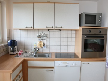 In den Küchen finden Sie Kühlschrank mit Gefrierfach, Herd, Backofen, Spülmaschine, Mikrowelle, Kaffeemaschine, Toaster, Eierkocher, Mixer, u.v.m.